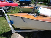 Besonders die zweite Wettfahrt hatte es in sich. Wähnte ich mich nach der Startkreuz bereits als der sichere Sieger, war ich fünf Minuten später wieder vom Feld angesaugt worden. Die Wettfahrt gewann Hans-Werner Ramm, der aus dem Nichts kommend eine perfekte Zielkreuz segelte. Bis zur Preisverteilung durften wir uns die Zeit mit Booteverpacken und Essen vertreiben. Sönke und Martin sind mit den Booten direkt nach Kiel gefahren um Sönkes Boot bei Karsten Kraus in die Werft zu stellen. Ich habe den Nachmittag genutzt um mein neues Boot so weit zu tunen, dass ich in Zukunft ohne Feuerlöscher auskomme.