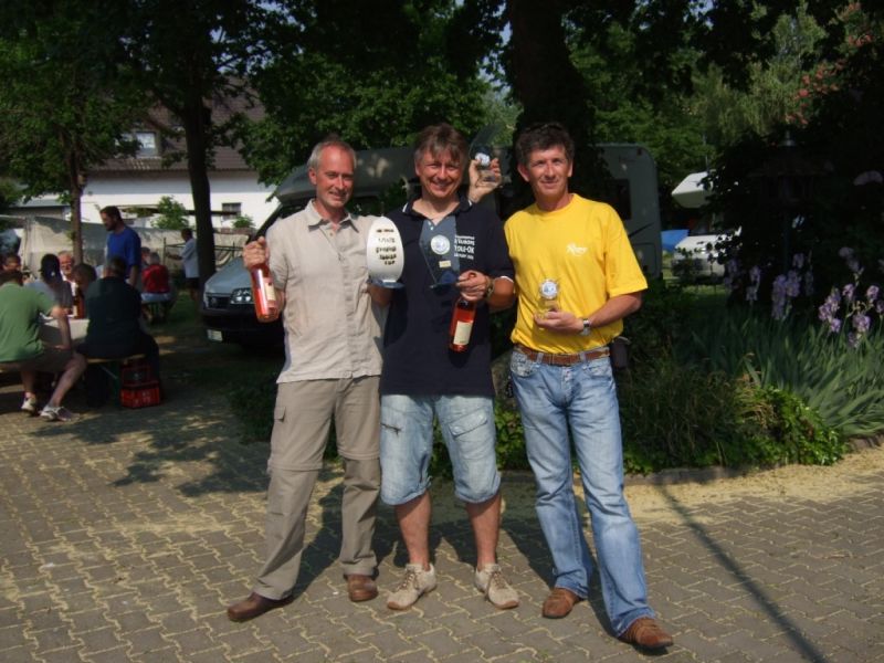 Nach drei spannenden Wettfahrten war der 1. Einhand-Cup beendet und Sieger sowie Platzierte standen fest. Nachdem alle ihre Boote wieder verpackt hatten, ging's dann zur Preisverteilung in den Club, wo wir alle noch auf Kaffee und Kuchen eingeladen wurden. Somit hatte Dirk vor Jürgen und Michel die Regatta gewonnen. Fazit: Spannendes Revier, sehr gut organisierte Veranstaltung mit professioneller Wettfahrtleitung und sehr freundlichen Leuten. Es lohnt sich also im nächsten Jahr wieder an den Silbersee zu fahren.