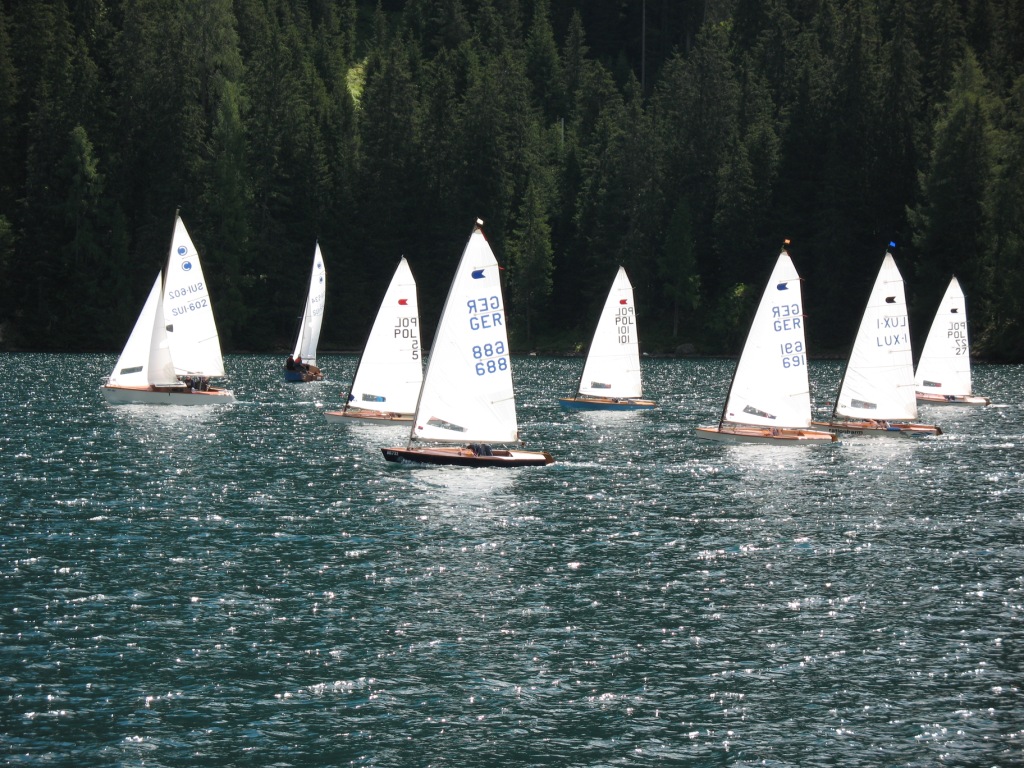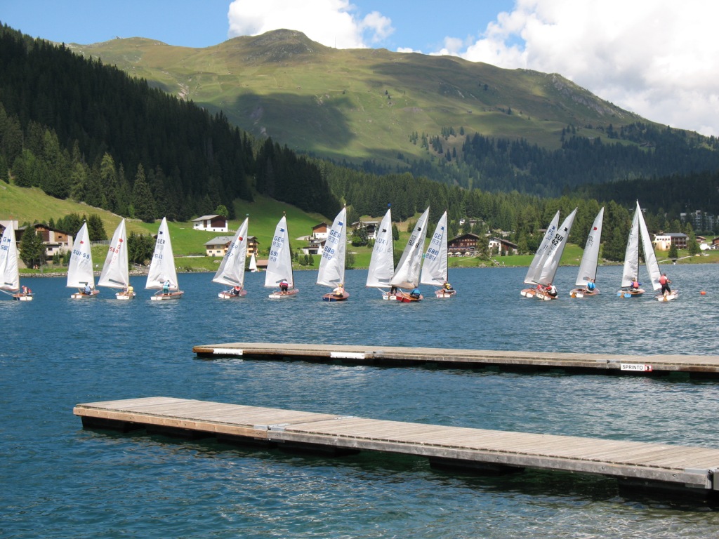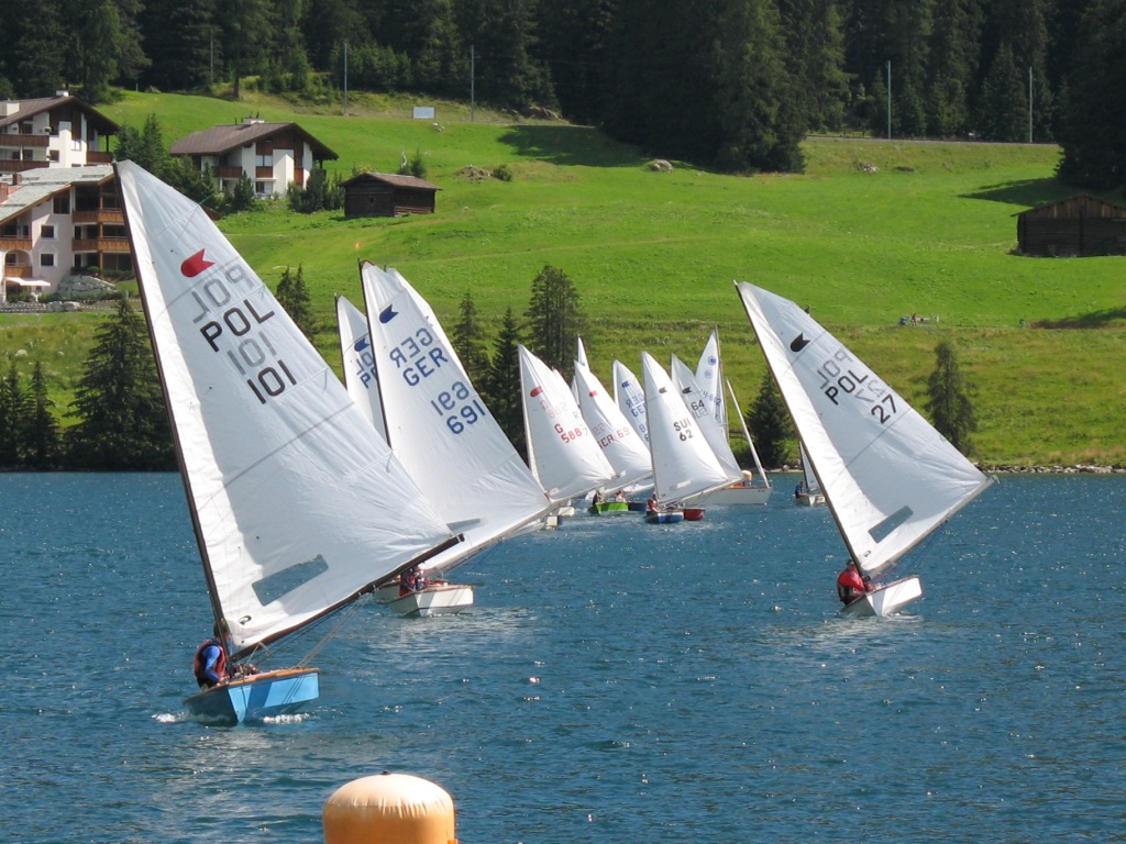 Dirks Meldeliste weist schon seit Tagen eine unglaubliche Überraschung auf: vier polnische Segler haben gemeldet. Glauben wollten wir es erst, als wir sie tatsächlich am Samstag auf dem Wasser gesehen haben. 1200 Km Anreise für eine Regatta auf dem Davoser See. Es gibt sie noch, die wahren, solidarischen OK-Segler! Jetzt sind 17 Boote am Start. Im Vergleich zu den letzten Jahren eine Steigerung um 100 %. Vier Nationen sind vertreten, welche Chance, durch sportliche Gemeinsamkeiten ein Europa ohne Grenzen zu fördern. Auch sprachlich gelang das auf dem Wasser auf Anhieb recht gut ( „come on Janusz, you have to kringel now...“ ). Von Beginn an zeigten uns unsere polnischen Segelfreunde, wer hier am meisten trainiert hat. Jacub Kania segelte gleich im ersten Lauf mit großem Abstand einen Sieg ein. Einzig Dirk gelang es noch die polnische Armada samstags etwas aufzumischen, aber auch er musste neidlos in den meisten folgenden Rennen erkennen, dass man in Polen zu segeln versteht.