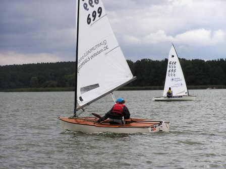 Es war ein wirklich schönes Regattawochenende mit allem was dazugehört. Mit 23 Booten stellten wir die zweit größte Flotte, darunter auch längst verschollen geglaubte OKler wie Holger Lauschke und Andreas Kudella und auch Tilli, der ja mangels Mini-Rigg-Wertung mit dem großen Rigg unterwegs war, hatte seinen Spaß und kämpfte sich trotz 5-Bft-Böen mit seinen nur ~45kg durch alle Wettfahrten. Auch immer wieder interessant ist das Materialkarussell zu bewundern, der Anzahl an „neuen“ gebrauchten Schiffen nach dreht es im Moment mal wieder auf Hochtouren.