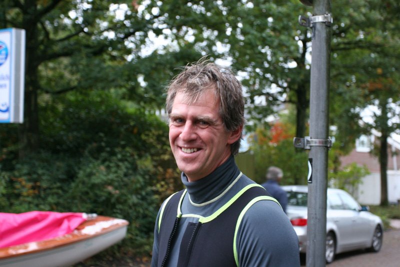 Sonntag 1 Wettfahrt: Mein Faserpelz war noch nass vom Vortag und ich mit meiner Erkältung wollte trocken segeln. Da ich einen neuen Vlies bei Marina bestellt hab, hatte sie mitgebracht, was die Kollektion hergab. Ich war wohl mit der Anprobe zu sehr beschäftigt, sodass ich zum ersten Start nicht rechtzeitig da war und hinter dem Feld "herhitzen" musste. Wenn ich das richtig sehen konnte, war Olli vorn, wurde auf dem Raumgang aber von Greg überholt, sodass im Ziel galt: Greg erster, Olli zweiter, Thomas dritter.