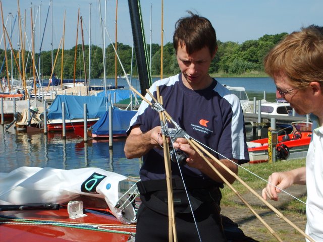 Beim Reinfahren kommentierte Dieter meine offenkundige Templiner-See-Kritik mit: „ Na der See ist doch gar nicht so schlimm, da lernen meine Studenten doch sogar Segeln!“ Klar Dieter, ich hab in Zeuten Segeln gelernt und da sind die Bedingungen oft noch viel lustiger, es ist ja auch egal ob der Wind mal von hier oder da kommt, wenn man nur so rum fährt. Aber wir wollen hier fair Regatta segeln! Das hier ist keine Gaudiregatta wie in Werder sondern eine Ranglistenwettfahrt (oder soll so was sein). Am Samstag hat es in jeder der 3 Wettfahrten ausreichend Gründe zum Abbrechen gegeben, aber die Wettfahrtleitung scheint das absolut nicht zu interessieren.