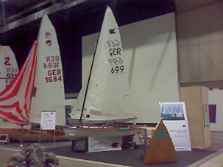 Sonntag kamen die Besucher aufgrund des winterlichen Märchenwetters eher verzögert auf die Messe und ab 18.00 konnten wir in geübter Geschwindigkeit den Stand abbauen und waren halb acht vom Hof. Jedoch war es vor allem ein Messe zum sehen und gesehen werden. Zumal ja auch in den anderen Klassen immer dieselben Engagierten am Stand stehen, die man seit Jahren auch vom Segeln her kennt. Da hat man dann endlich mal Zeit, länger miteinander zu schnacken. Selbst Herrn Fischer haben wir wieder positiv für die OK-Klasse stimmen können. Und Poldi wurde nicht müde, immer wieder Flyer für die nächste Warnemünder Woche zu verteilen. Charly kam auch immer wieder auf ein Bier vorbei, wenn er von seinem Stand loskam. Und auch etablierte Fachleute, wie Frank Sothmann kamen zum schnacken und natürlich im OK-Buch blättern und WM-Ergebnislisten von annodazumal durchzugehen (und der Angetrauten die gute Platzierung zu zeigen ;-) Insofern stand das Netzwerk-Schmieden wesentlich mehr im Vordergrund, als das Segler-Werben. Immerhin wissen wir jetzt, dass eine O-Jolle neu 24.000 € kostet und man zum Abriggen 5 Leute braucht, dass ein ein Jahre alter Pirat 18.000 € kostet, dass ein J24-Mast mit 7 Leuten gelegt wird, dass es bei Leipzig bald auch ein Neuseeland äh Neues Seenland gibt, dass die 20er Piraten im Schuppen verstecken, aber 100 000 Euro für ihre Schiffe ausgeben müssen, dass die Contender vergleichsweise günstige Segel haben, dass die 505er erfolgreich mit quarder-geschnittenen Segeln unterwegs sind, dass die Cadets aus Kostengründen lieber im Planschbecken kentern, als vor Argentinien, dass es die Einhand-Kielbootklasse (noch mal auf der Zunge zergehen lassen: Ein-Hand-Kiel-Boot-Klasse!) Monas noch gibt und dass Schwertzugvögel im Winter nicht gen Süden fliegen. Generell positiv zu vermerken ist, dass die Halle 25 mit den Vereinen und KVs immer voller und dichter wird und dort generell eine gute Stimmung herrscht. Die Besucher der Region scheinen auch gern dorthin zu strömen. Auf der Hanseboot kam mir die KV-Halle immer sehr verlassen vor. Dann bleibt mir nur, Euch allen einen schönen Winter, frohe Weihnachten, einen guten Rutsch und einen reibungslosen Saisonstart zu wünschen! Alle Hartgesottenen laufen ja noch mal zum definitiv letzten Segelevent in Potsdam am 06.12.08 bei Wiking zur legendären Nikolaus-Regatta der Piraten auf. Die OKler-Dichte im Starterfeld ist dieses Jahr besonders hoch. Wer auch noch daran teilnehmen möchte findet hier alle wichtigen Informationen. Wir können nur hoffen, dass der See dann noch eisfrei ist! Grüße von Jule P.S.: Hallensegeln haben wir dieses Jahr nicht gemacht.
