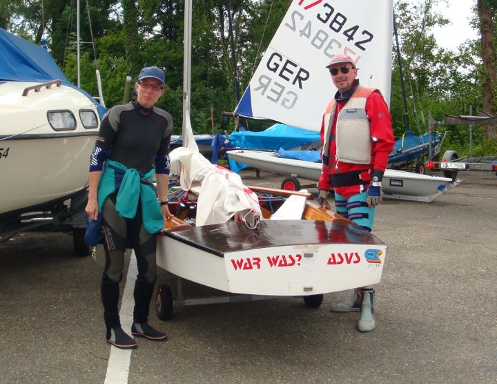 Die Meldungen der OK-Segler für diese Regatta gingen leider nicht so zahlreich ein wie gewünscht. Dann hat sich auch noch die Lady (Dame) geziert und der Schnee in den Bergen hat die "Alpinen Schlawiner" scheinbar auch davon abgehalten - und so waren's denn nur 8 Teilnehmer. Na ja - dafür hatten's wir etwas ruhiger ... Der Club ist schön gelegen, Hafen Ost (erster Jachthafen kurz vor Überlingen im Teilort Nussdorf) und hat eine nette Atmosphäre. Am Samstag Morgen trafen die OK'ler dann nach und nach ein. Zwei neue Gesichter aus Stuttgart - Birgit und Peter - waren auch dabei und hatten Ihren Spaß. Herzlich willkommen in der OK-Klasse im Süden.