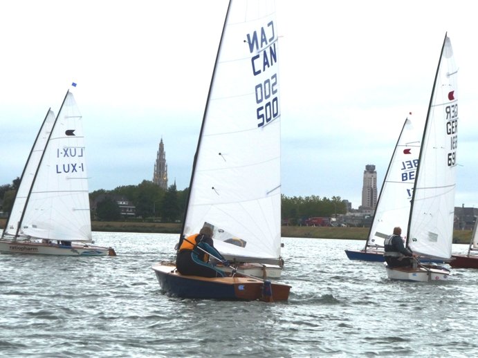 Die belgische Meisterschaft findet auf dem Galgenweel statt. Das ist ein schöner, überschaubarer, kleiner, von allen Seiten einsehbarer See (800 m x 500 m). Für Mitreisende und Zuschauer ist das der beste See, den ich in den letzten 25 Jahren regattiert habe. Direkt gegenüber liegt die Skyline von Antwerpen, die Altstadt sollte man mal gesehen haben. Für uns Halterner ist diese Veranstaltung ein Muss. Mit Thommy am Freitagabend zusammengepackt und los ging's. Um 21:30 Uhr standen wir auf der Wiese am Galgenweel, der VW-Bus war ausgerichtet, ein Bier in der Hand, den See im Rücken, in der Nase eine leichte Brise mit angereicherten Aromen der umliegenden Raffinerien. Das Wochenende konnte losgehen und im Laufe des Abends, ja sogar der Nacht trudelte der restliche OK-Treck ein.