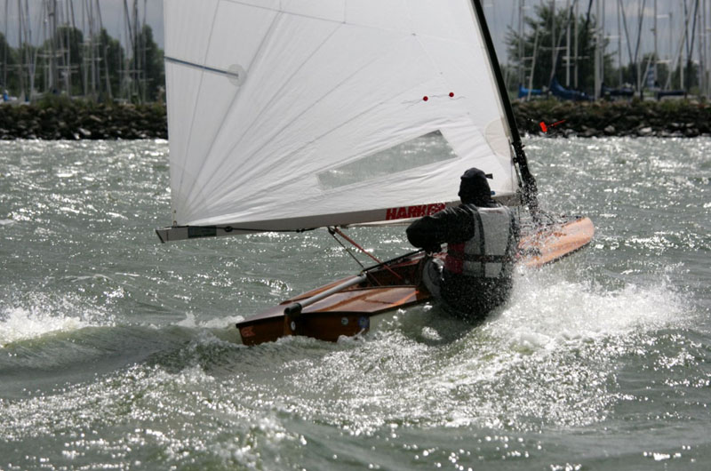 Überhaupt war die professionelle Wettfahrtleitung das eigentliche Highlight der Veranstaltung. Da lag die Linie mit einer einzigen Ausnahme immer perfekt, da gab es praktisch keine Wartezeiten zwischen den Wettfahrten, schon gar nicht nach Frühstarts und aufgrund des professionellen agierens klappte auch spätestes der zweite Startversuch. Das Gate lag immer richtig und, extra für OK-Jollen, wurde dies erst nach dem Dreieck ausgelegt. Wind war für den echten Tümpelflitzer eigentlich immer zu viel. Trotz lachender Sonne am morgen und zunächst schwacher Brise, stellten sich dann spätestes zum Start 3-4Windstärken ein, der dann über den Tag noch weiter auffrischte.