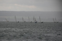 Am Samstag ging es dann nach der freundlichen Begrüßung durch den Regattaleiter Thomas Drexler auf den See. Es folgten 4 Wettfahrten die, sowohl den Seglern, wie auch dem Regattaleiter und seinem Team alles abverlangten. Kaum waren die Tonnen gesetzt, drehte der Wind, somit waren fast nur verkürzte Kurse am Samstag möglich. Dazwischen baute sich auch ein klassischer "Ansauger" einer Wetterfront auf, welcher mit einem gewaltigen Regenschauer über die Segler hinwegzog. Nach dem Regen hellte es aber immer wieder auf, Zeit genug um die Schwimmbrille für die nächste Wettfahrt zu putzen ...